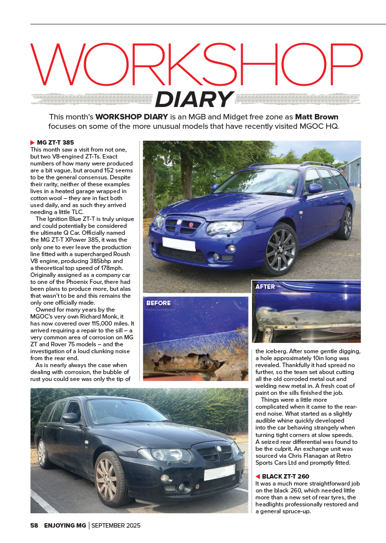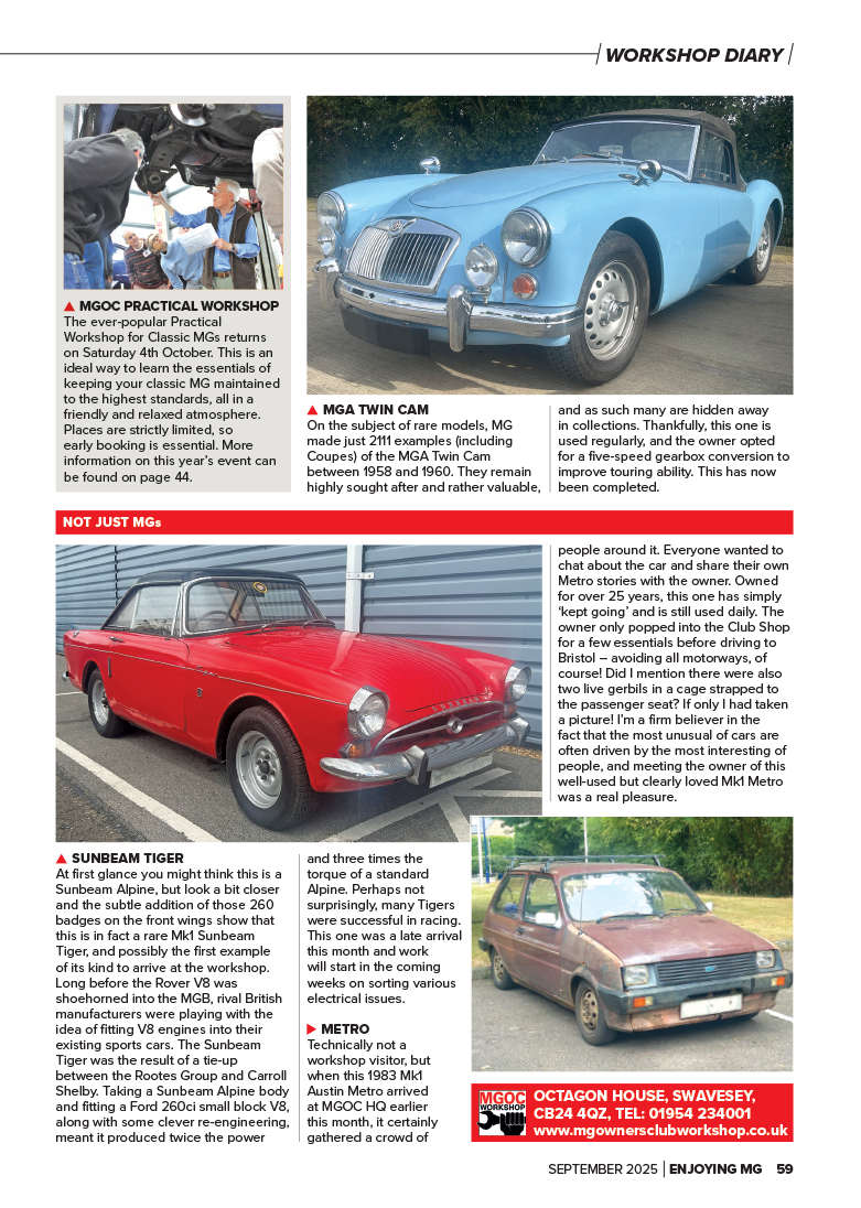 MGOC WORKSHOP DIARY SEPTEMBER 2025