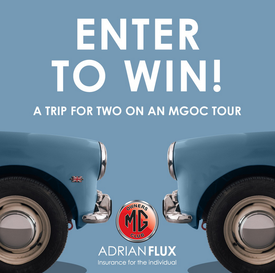 We are delighted to announce our new competition in partnership with Adrian Flux Insurance Services. Adrian Flux will be gifting one lucky MGOC member a Trip For Two on any UK & Ireland 2026 MGOC Travel Club Tour.